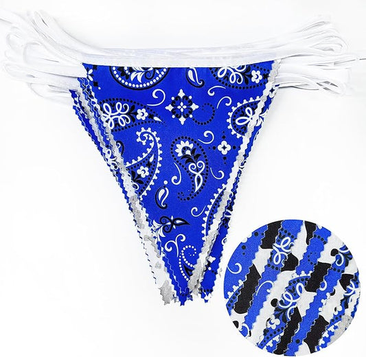 32Ft Western Cowboy Party Decorations Blue Paisley Bandana Pennant Banner Fabric Triangle Flag Wild West Garland Streamers for Western Cowboy Birthday Yee Haw Country Baby Shower Party Decor Supplies