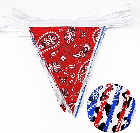 32Ft Western Cowboy Party Decorations Red Paisley Blue Bandana Pennant Banner Fabric Triangle Flag Garland Streamers for Western Cowboy Birthday Yee Haw Country Baby Shower Party Decor Supplies