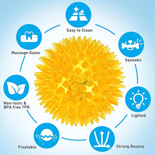 6-Pack 3.5” LED Light-Up Squeaky Dog Toy Balls ,Durable Interactive Glow Fetch Toys for Aggressive Chewers,BPA Free Non-Toxic, Spiky Puppy Chew Balls