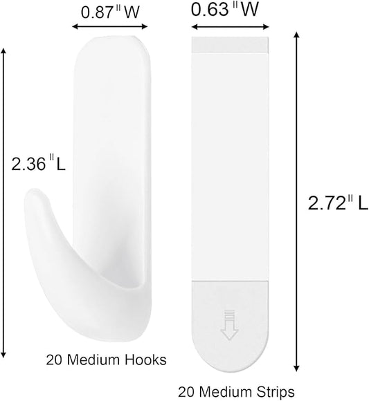 Wall Hooks for Hanging 20 Medium Hooks, Heavy Duty Wall Hooks with 20 Strips, Damage Free Adhesive Hooks for Key Holder, Coat, Door, Shower Hanging