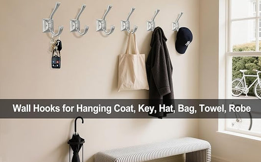 2 Pack Brushed Nickel Towel Robe Hooks, Coat Hooks for Wall Hanging Hat, Key, Bag, Mudroom Hook Entrance Bathroom Door Decorative Heavy Duty Hats Hanger