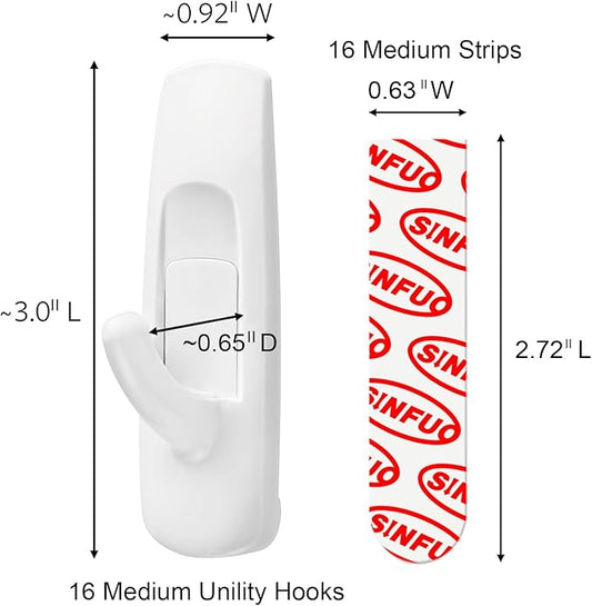 Utility Wall Hooks for Hanging Medium 16 Hooks, Damage Free Hanging Wall Hooks with Adhesive Strips, Heavy Duty Adhesive Hooks Damage Free for Key Holder, Coat, Door, Shower Hanging