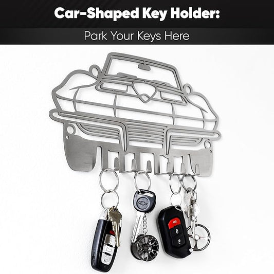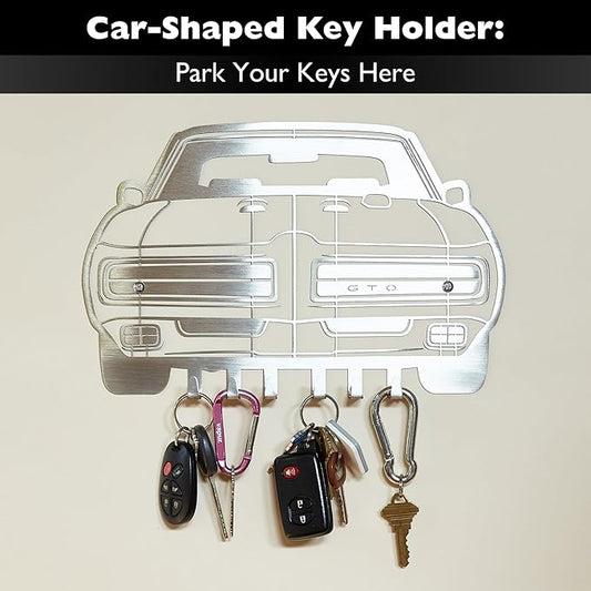 MOOH Metal Automotive Key Holder with 6 Hooks - Unique Wall Mounted Car Lovers Gifts for Men & Women - Cool Man Cave Decor (Pontiac GTO 1969, Stainless Steel)