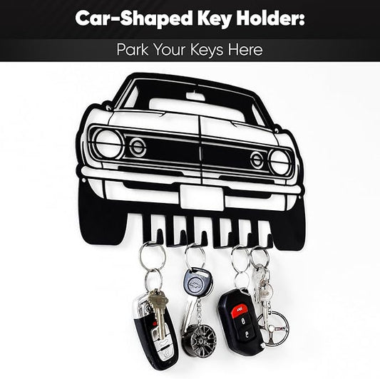 MOOH Car Key Holder for Wall - Metal Automotive Key Holder with 6 Hooks - Unique Car Gift for Men, Women, Car Lovers & Enthusiasts - Cool Man Cave Decor (Chevy Camaro 2014, Stainless Steel)