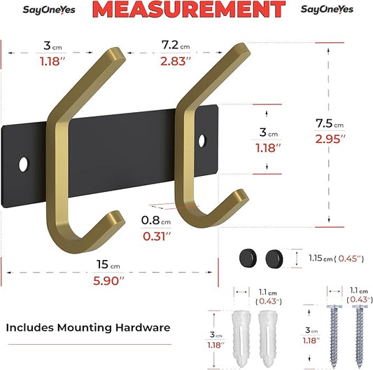 Small Coat Rack Wall Mount – Black and Gold Hook Rail with 2 Double Coat Hooks, 6 Inch Stainless Steel Wall Hooks for Entryway, Bathroom, Bedroom, Closet, Towel, Hat, Bag, Heavy Duty Organizer