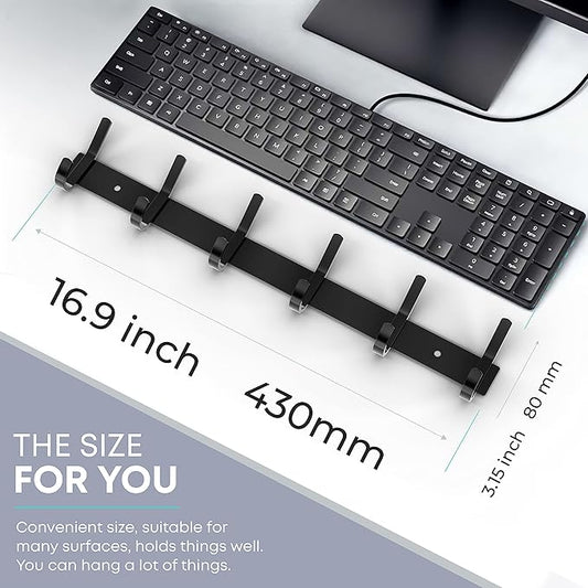 Matte Black Coat Rack Wall Mount – 17 Inch Stainless Steel Hook Rail with 6 Double Coat Hooks – Wall Mounted Entryway Organizer for Coats, Hats, Bags, Towels, Robes, Closet or Bathroom