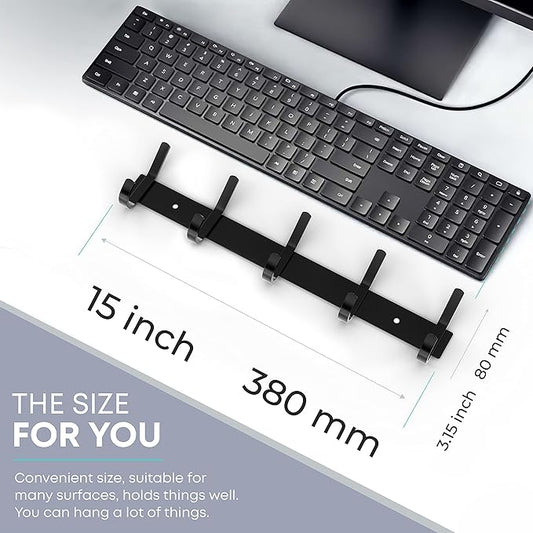 Matte Black Coat Rack Wall Mount – 15 Inch Stainless Steel Hook Rail with 5 Double Coat Hooks – Wall Mounted Entryway Organizer for Coats, Hats, Bags, Towels, Robes, Closet or Bathroom