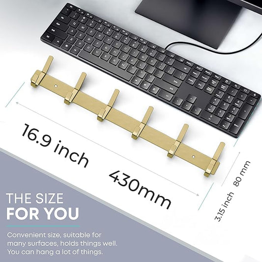Brushed Gold Wall Mounted Coat Rack – 17 Inch Stainless Steel Rail with 6 Double Coat Hooks for Entryway, Bathroom, Bedroom, Kitchen – Modern Gold Hook Rack for Coats, Hats, Towels