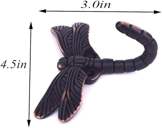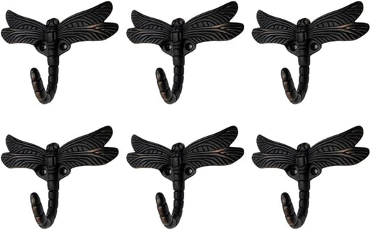 6 pcs Oil Rubbed Bronze Dragonfly Decorative Wall Hooks for Hanging Coats, Keys, Towels, Bags, and More
