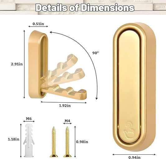 Folding Wall Hooks,4Pcs Gold Heavy Duty Wall Hook Folding Coat Hooks for Hanging Coats Bathrobes Green Plants Bags Keys Towel Gold Hook for a Functional Home(4,Gloden)