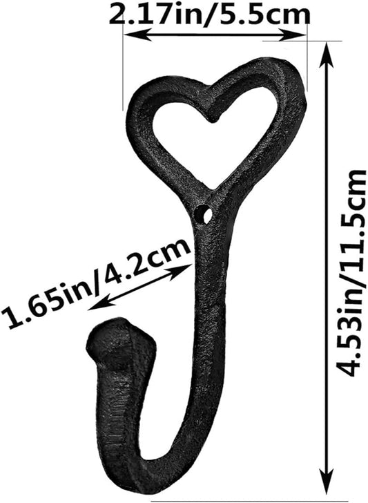 ZEYU Heavy Duty Coat Hooks, 4pcs Cast Iron Love Heart Shape Wall Hooks for Hanging Coats, Black No Rust Hooks for Scarf, Bag, Towel, Key, Cap, Cup, Hat