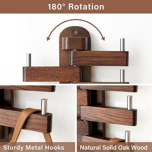 Swivel Coat Rack Oak Hooks, Wood Wall Coat Rack With 5 Foldable Arms, 12'' Length Hat Hooks for Bathroom Entryway Bedroom Office Kitchen, Heavy Duty (Walnut)