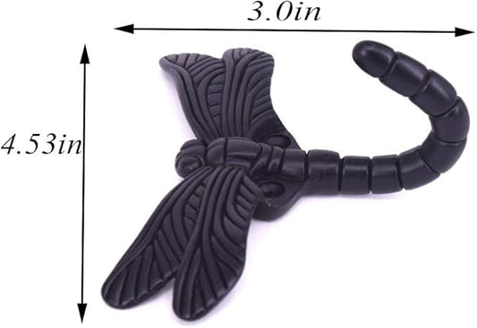 2pcs Dragonfly Coat Hooks Decorative Creativity Wall Mounted Hanger Hook for Home Handbag Key Towel Bathrobe (Black)