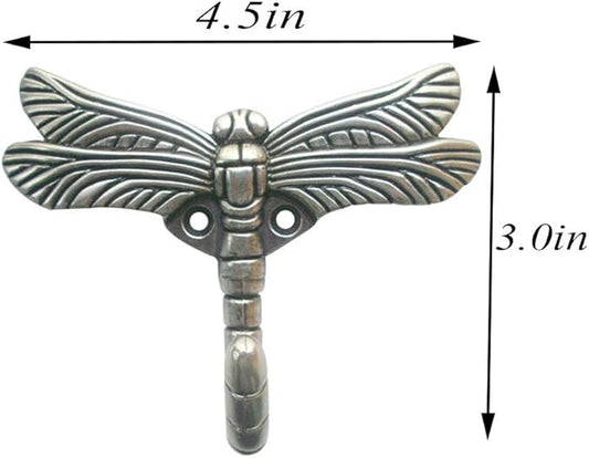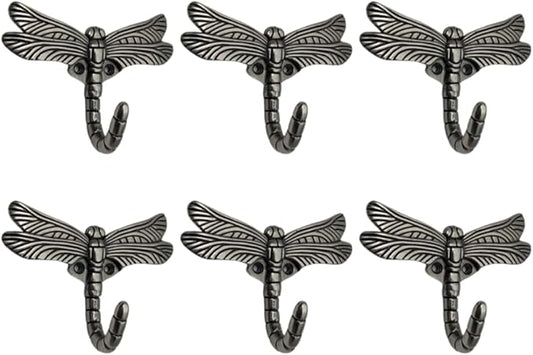 6 pcs Antique Silver Dragonfly Decorative Wall Hooks for Hanging Coats, Keys, Towels, Bags, and More