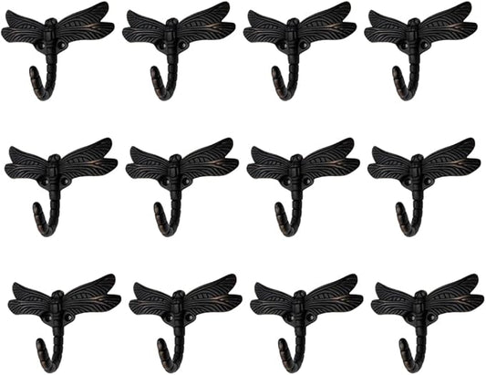 12 pcs Oil Rubbed Bronze Dragonfly Decorative Wall Hooks for Hanging Coats, Keys, Towels, Bags, and More