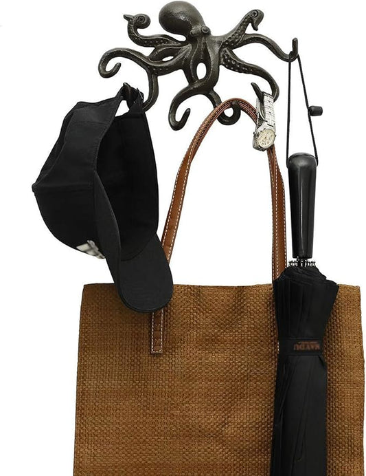 Key Holder for Wall, Octopus Coat Hooks Wall Mounted Towel Hooks, Heavy Duty Key Hooks Decorative with 6 arms