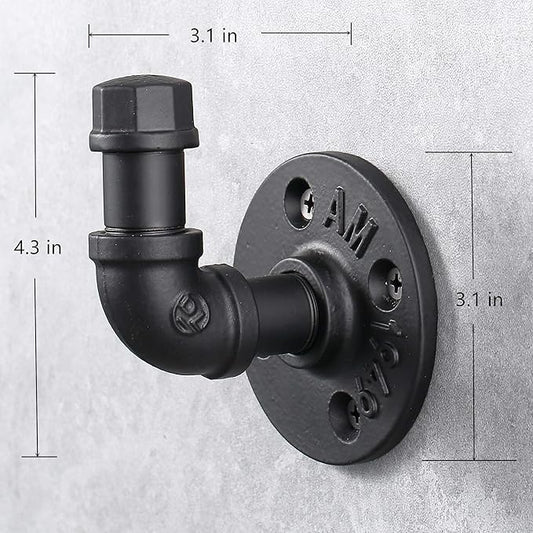 Elibbren 3 Pack Rustic Style Industrial Iron Pipe Coat Towel Holder Wall Hook for Hanging, Wall Mounted Vintage Robe Clothes Hanger Heavy Duty Farmhouse,Mounting Hardware Included Black