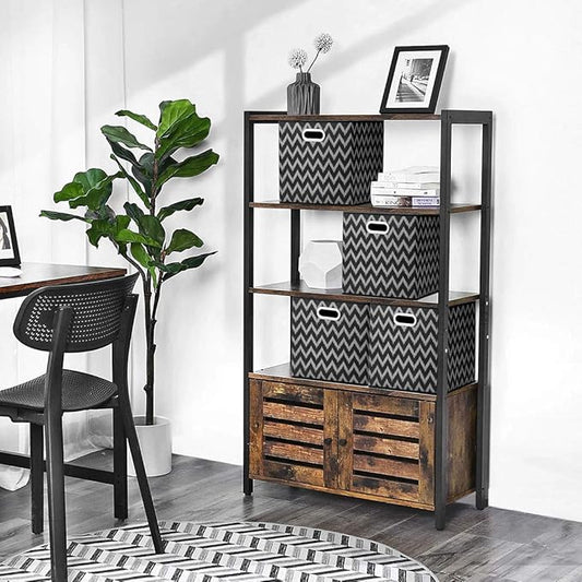 Stero Fabric Storage Cubes, 6 Pack Foldable Storage Bins with Handle, 11.8 Inch Box for Shelves, Closet, Organizer, Rustic Brown and Black