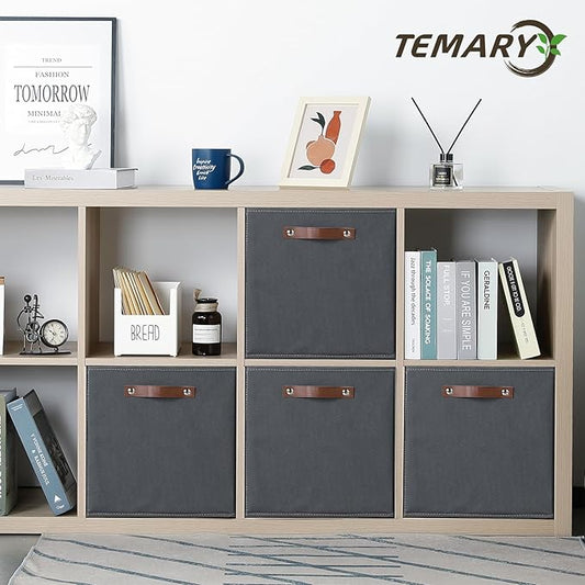 Temary 11x11 Storage Cubes Fabric Cube Storage Bins with Handles Clothes Storage Boxes Baskets for Organizing Home, Shelf, Closet (Grey, 11 x 11 x 11)