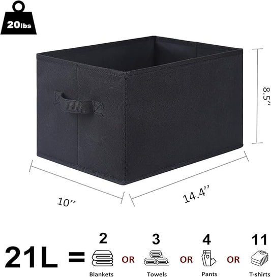 WUIKE Foldable Fabric Storage Bins with Handles, Closet Storage Baskets for Shelves and Clothes Organization, Large Black Shelf Baskets, 3-Pack, Black, Large