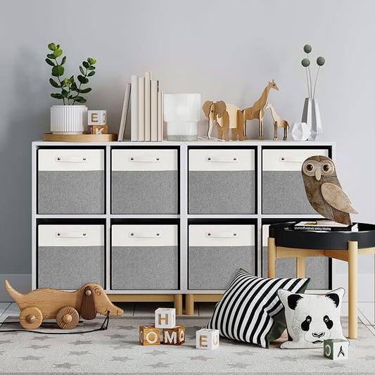 Temary Cube Storage Bins 4Pack Foldable Cube Baskets for Clothes Shelf Storage Basket with Handles, Storage Box Fabric Storage Organizer Bins for Home (White&Grey, 13x15x13 Inch)
