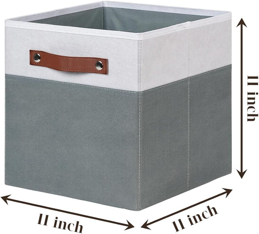 Temary 11x11 Storage Cubes Fabric Cube Storage Bins with Handles Clothes Storage Boxes Baskets for Organizing Home, Shelf, Closet (White&Grey, 11 x 11 x 11)