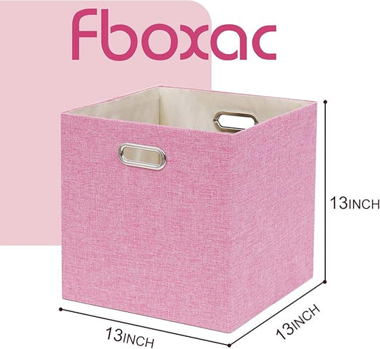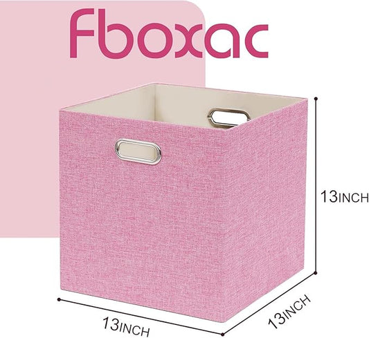 Pink Cube Storage Organizer Bins 13x13x13 Inch, 4 Pack Collapsible Organization Baskets with Handles, Thick Fabric Foldable Storage Boxes for Kallax Shelf Bookcase Closet Cabinet