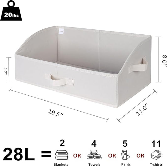 WUIKE 3 Pack Extra Large Closet Storage Bins with Handles, Fabric Trapezoid Storage Binsr for Organizing Clothes, Sheets, Blankets, White & Beige