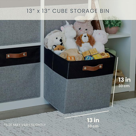 OrganiHaus 13x13 Cube Fabric Storage Bins Set of 4, Fabric Storage Cubes w/ Vegan Handles, 13 inch Collapsible Bins for Clothes & Toy Organizer, Cubbies Organizer, 13x13 Basket for Decor - Grey/Black