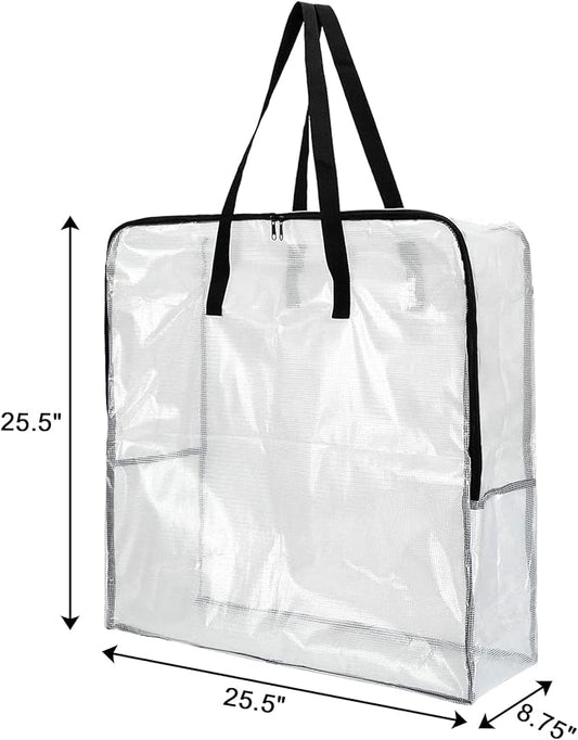 Fasmov 4 Pack Oversized Clear Storage Bag with Handles and Zippers, Vinyl Storage Bag for Comforter, Blanket, Bedding, Duvet, Transparent Moving Tote, Under the Bed Storage, Garage Organizer