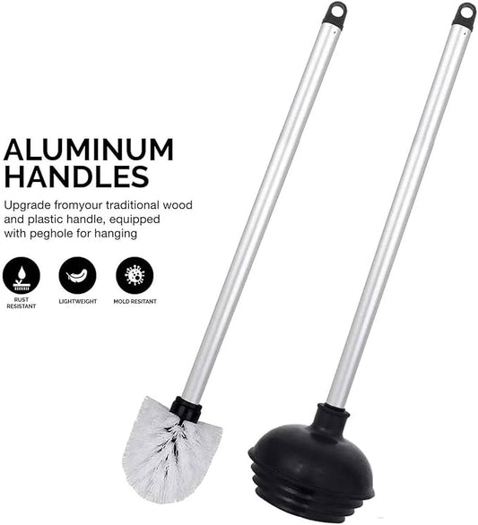 NEIKO 60167A Toilet Plunger with Holder for Brush and Bathroom Plunger Set, Clean Aluminum Handle, White Plunger Caddy, Toilet Brush Set for Cleaning Toilet Bowl