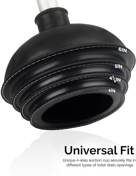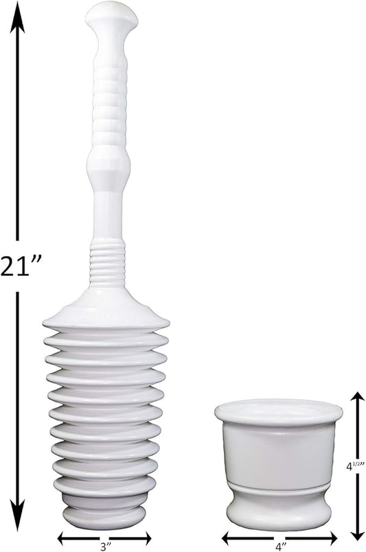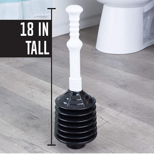 JS Jackson Supplies Professional Bellows Accordion Toilet Plunger, High Pressure Plunge Removes Heavy Duty Clogs from Bathroom Toilets, All Purpose Power Plunger, White & Black