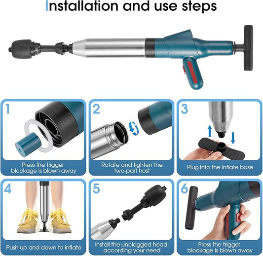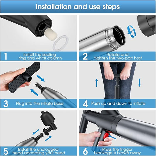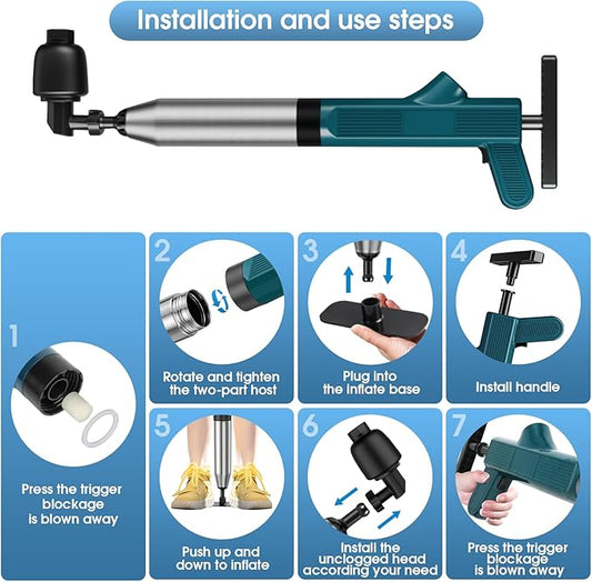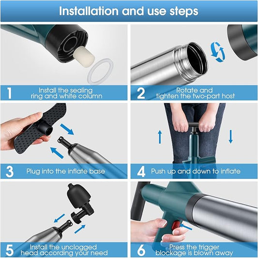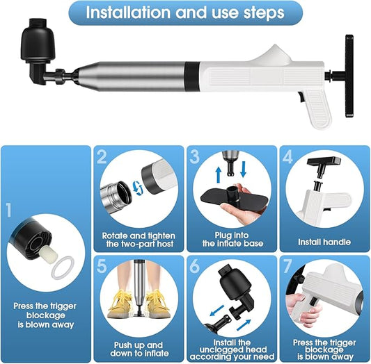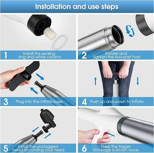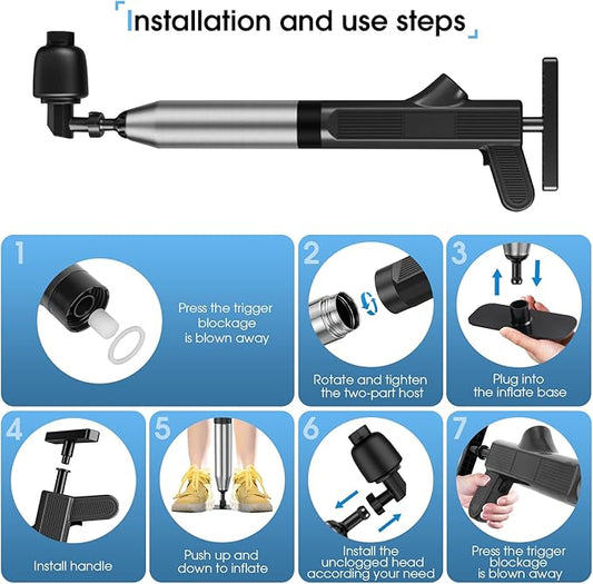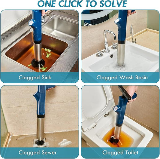 Toilet Plunge Blaster, High Pressure Toilet Plunger, High-Pressure Air Drain Blaster Plunge Blaster Multi-drain Unclogger for Toilets, Bathroom Floor, Drain Sinks and Plumbing Clogs.