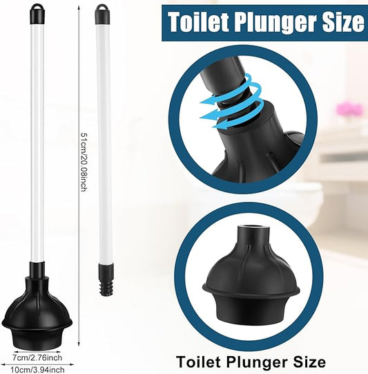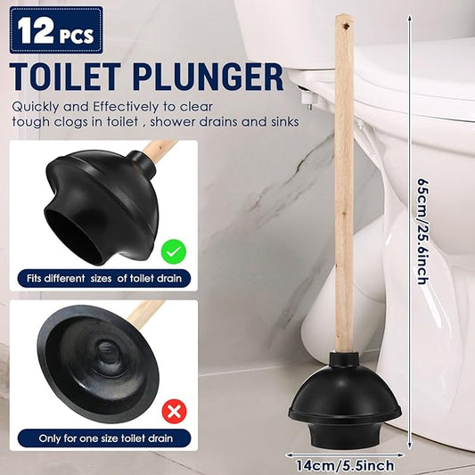 Dandat 12 Pcs Rubber Toilet Plunger with Double Thrust Force Suction Cup Long Wooden Handle Toilet Bowl Plunger Heavy Duty Pump Clogged Solution for Bathroom Stores Restaurants, Black
