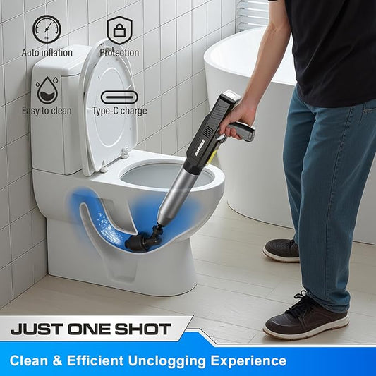 Electric Toilet Plunger for Bathroom, High-Pressure Air Plunger, Heavy-Duty Clog Remover for Toilets, Toilet Drain Unclogger (Ink Black)