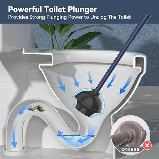 Toilet Plunger with Holder, Plunger with Holder for 5.3-inch Toilet Drain, Plungers for Bathroom with Holder, Toilet Plunger Heavy Duty (2, Blue)