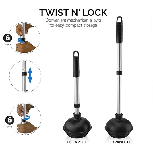 NEIKO 60169A Toilet Plunger | 2 Piece | Bonus Mini-sink and Drain Plunger | Compact | Patented All-Angle Design | Telescopic Aluminum Handle