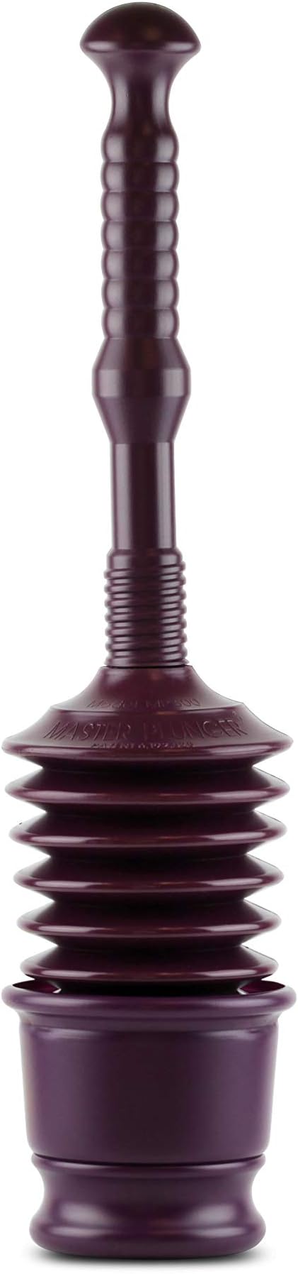 Master Plunger MP500-B Heavy Duty Bathroom Toilet Plunger Kit with Short Bucket. All Purpose Plunger Equipped with Air Release Valve, Plum