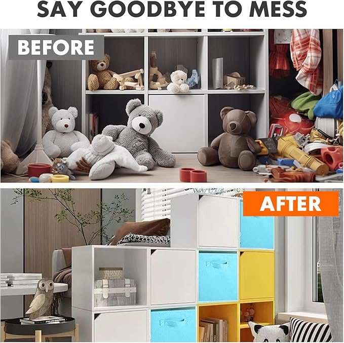 - FOR ANY ROOM AND VERSATILE: These cloth storage bins use in the kid's room, family room, laundry area, closet, storage room, etc. Sit on the floor, in the closet, bookcase, desk, shelving area, and cubbies, available in a variety of attractive colors