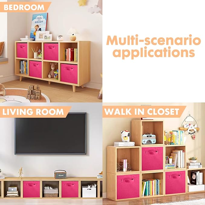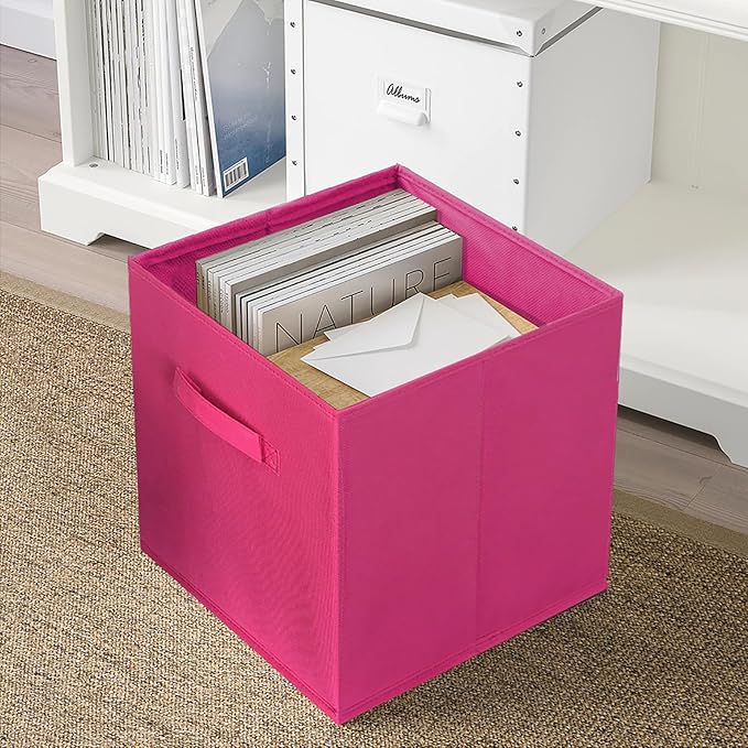ShellKingdom Storage Bins, Foldable Fabric Storage Cubes And Cloth Storage Organizer Drawer For Closet And Toys Storage, 6 Pack (Fuchsia)