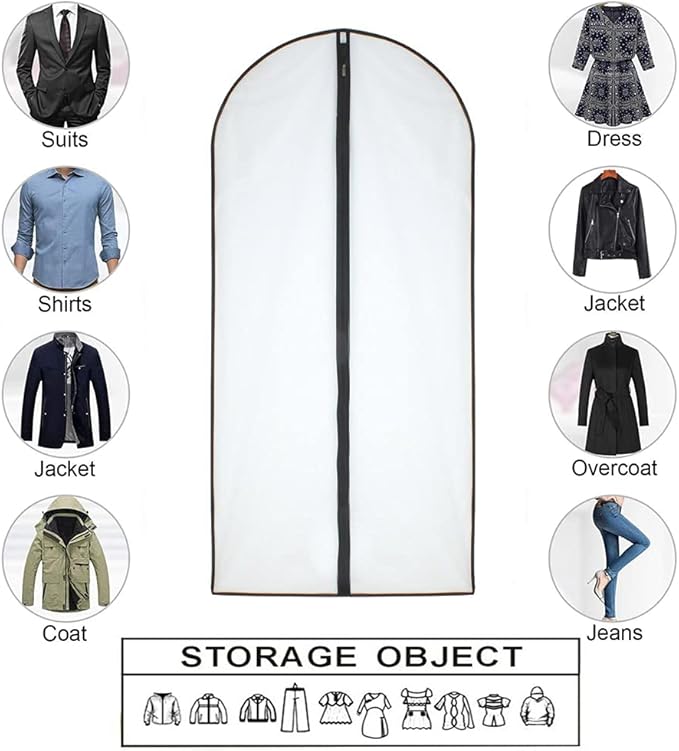 - 📣【DUST-FREE GARMENT COVER】: keep your favorite & expensive clothes dust-free and fresh. With these coat bags for closet storage, each of your suites or dresses can have its own cover and room to breathe. The translucent garment bag can be folded in a small size easily, is very easy to store when you don't use them, and save lots of space.