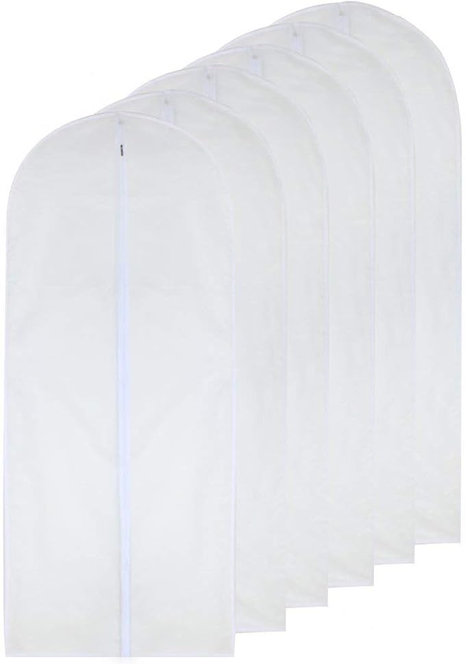 Garment Bag Clear for Long Dress 24'' x 60'' Zippered Garment Bags for Hanging Clothes White Breathable Full Zipper Dust Cover for Clothes Storage Closet Pack Of 6