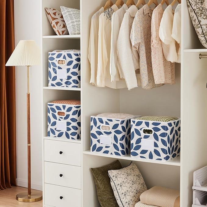 - HIGH CAPACITY & MUTIFUNCTION STORAGE: Set of 4pcs, dimension of 12"x12"x12"(L*W*H), maximum storage weight of 5kg (11lb). Great for organizing baby clothes, underwear, socks, toys, albums, games, magazines, craft supplies. Designed to perfectly fit most cube organizers,"you can choose the most suitable size according to your storage furniture needs before making a purchase".