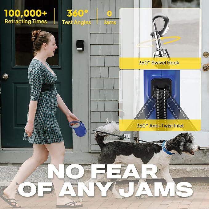 - HEAVY DUTY, DURABLE & STEADY - 16 ft high strength nylon tape with durable rustproof swivel hook and steady impact-resistant ABS material, suitable for large dogs up to 110 lbs. Top durability Internal Coil Spring for Consistent Retraction several years.