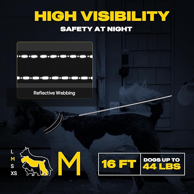 - HEAVY DUTY, DURABLE & STEADY - 16 ft high strength nylon tape with durable rustproof swivel hook and steady impact-resistant ABS material, suitable for Small and Medium dogs or cats up to 44 lbs. Top durability Internal Coil Spring for Consistent Retraction several years.