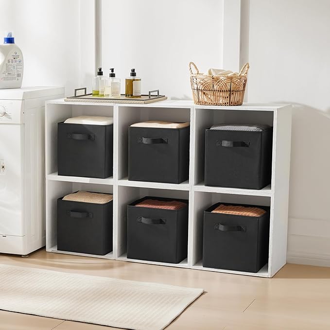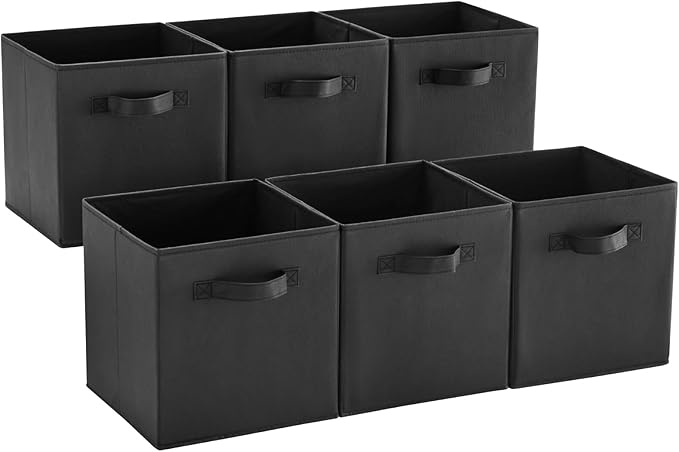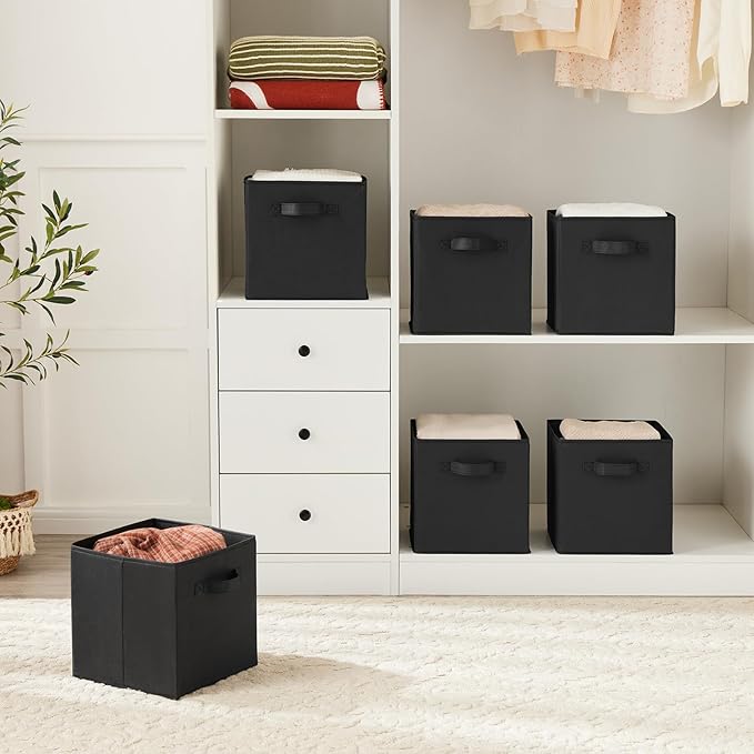 MAX Houser Fabric Cloth Storage Bins,Foldable Storage Cubes Organizer Baskets with Dual Handles for Home Bedroom Storage,Set of 6(Black)