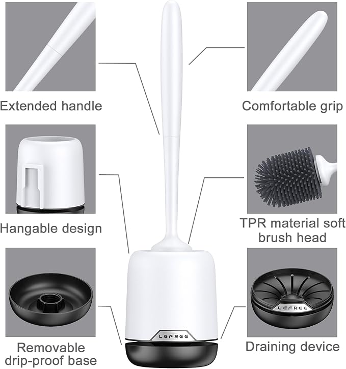 - Clean Thoroughly - The toilet bowl brush and holder has a soft silicone rubber head which can easily reach these grooves to clean thoroughly.