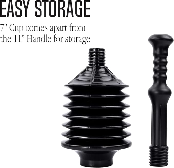 JS Jackson Supplies Professional Bellows Accordion Toilet Plunger, High Pressure Thrust Plunge Removes Heavy Duty Clogs from Clogged Bathroom Toilets, All Purpose Power Plungers for Bathrooms, Black
