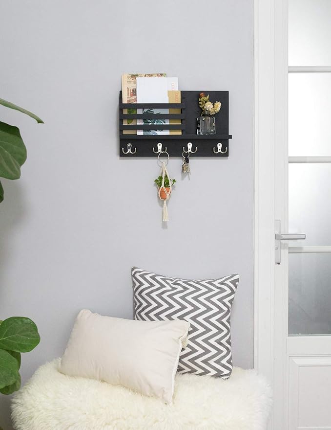 - VERSATILE ORGANIZATION: This black hanging orgi has separate spots for mail, keys,wallet,umbrella and other personal items, so nothing will ever get lost in the mix.If you have some empty wall space,our wall-mounted entryway organizers will help you fix that.