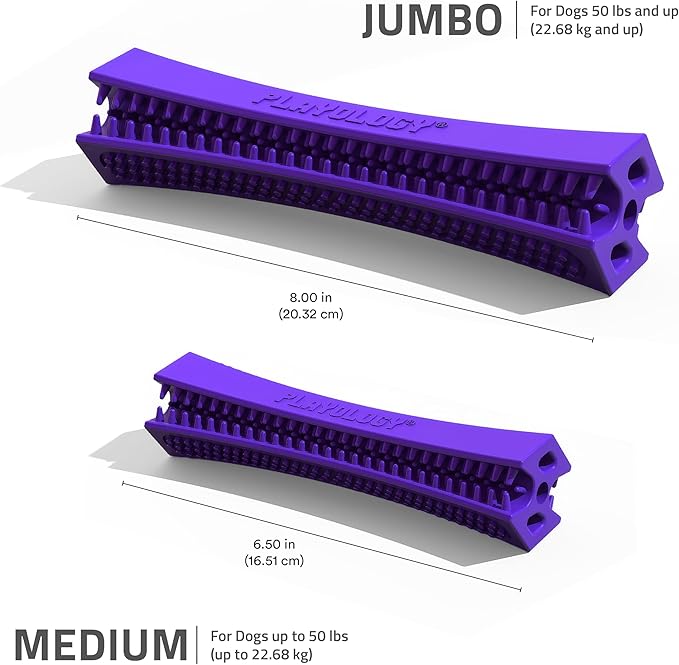 - MEET THE SENIOR DENTAL CHEW STICK: Made with a soft rubber material designed for aging teeth and gums, and embedded with an all-natural Pork Sausage scent, this is the toy your senior pup has been waiting for. This interactive chew toy is designed with deep grooves to help clean your pup's teeth and gums while they play and chew. The Medium size is ideal for dogs up to 50lbs.